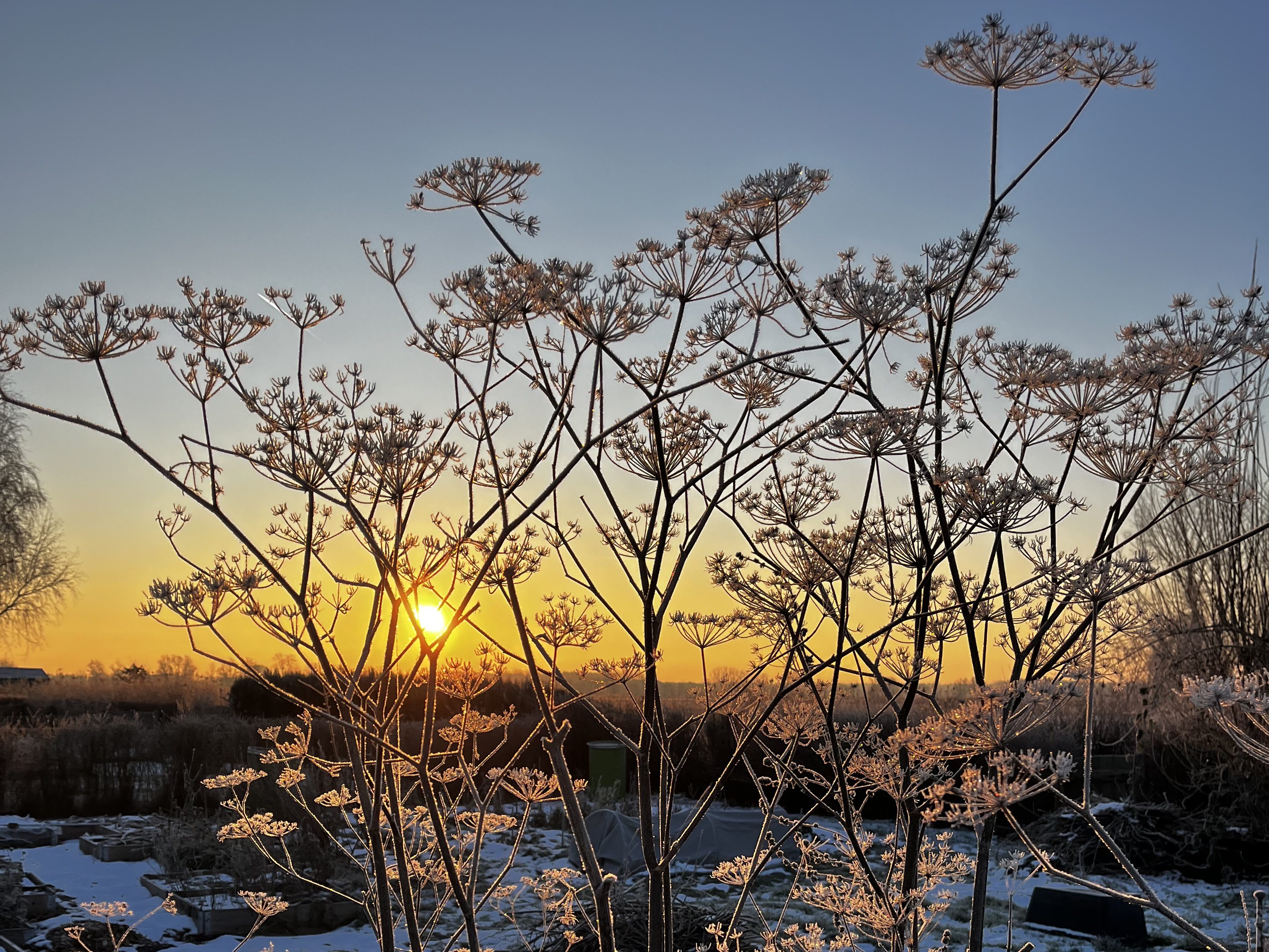 Noch ist alles farblich eher gedeckt, wie eine alte Fotografie in Sepia. Die Strukturen kommen im winterlichen Garten besonders gut zur Geltung, die Samenstände der Wilden Möhre, des Gewürzfenchels oder der Astern funkeln im morgendlichen Tau. Wer genau beobachtet, kann einige Insekten entdecken, die Zuflucht gefunden haben in den abgetragenen Stauden. Wir lassen über den Winter alles stehen, das erfreut die vielen Lebewesen, die meist so klein sind, dass wir sie leider oft übersehen. Alles hat seinen Sinn, die vielen kleinen Nützlinge werden in diesem Jahr wieder gute Gartenhelfer sein. Ich freue mich darüber ungemein, dass wir allen Gartenbewohnern viele Nischen und Zufluchtsorte bieten – auch in dem Wissen, dass sie uns das Gärtnern tierisch erleichtern. Für jeden Schädling gibt es auch Gegenspieler – fressen und gefressen werden – wenn wir auf kluge Weise die Nützlinge anlocken, weil es ihnen bei uns gefällt, haben wir kaum Schädlingsdruck und gesunde Pflanzen.
